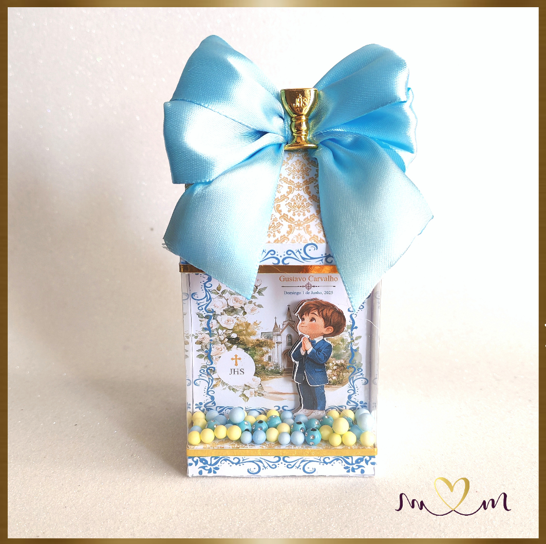 Celebre este momento especial com elegância e significado com a Caixa Milk Shaker Personalizada, desenvolvida para tornar a mesa de doces ainda mais encantadora e proporcionar uma lembrança inesquecível às crianças convidadas.